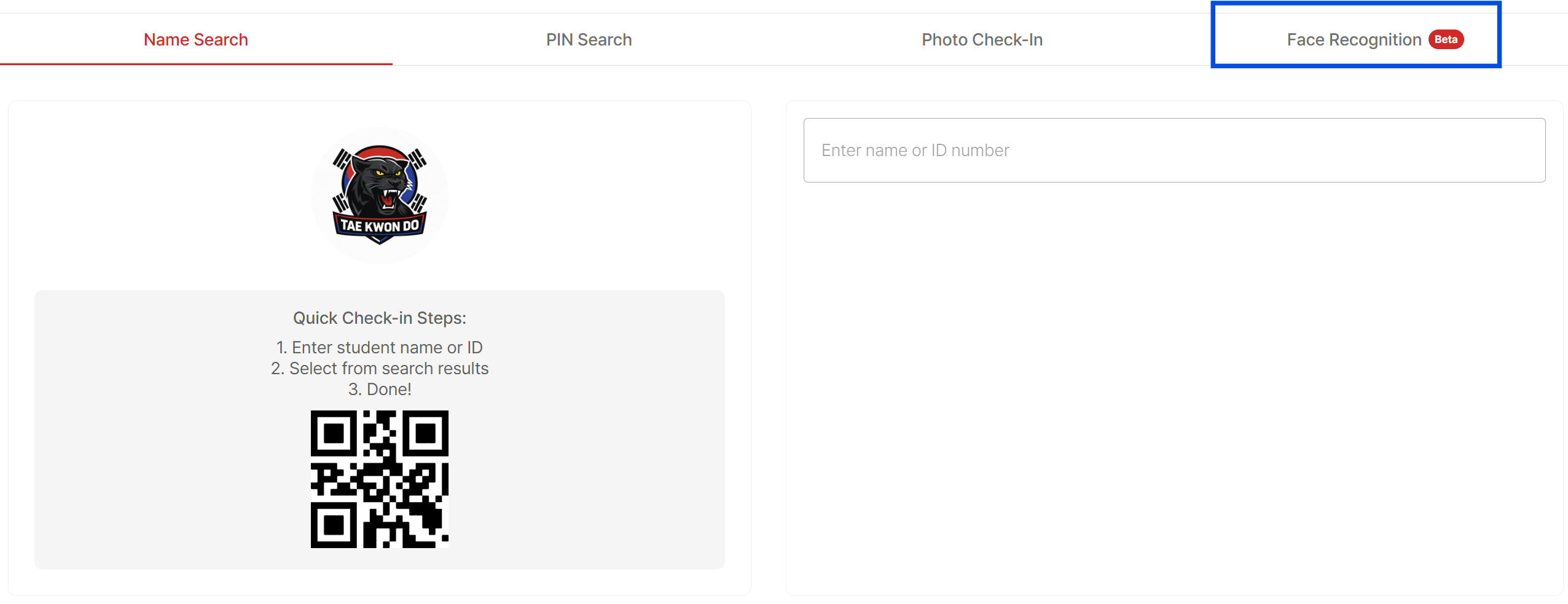 2. Select Face Recognition (Beta) (Alongside Name Search, PIN Search, and Photo Check-in
