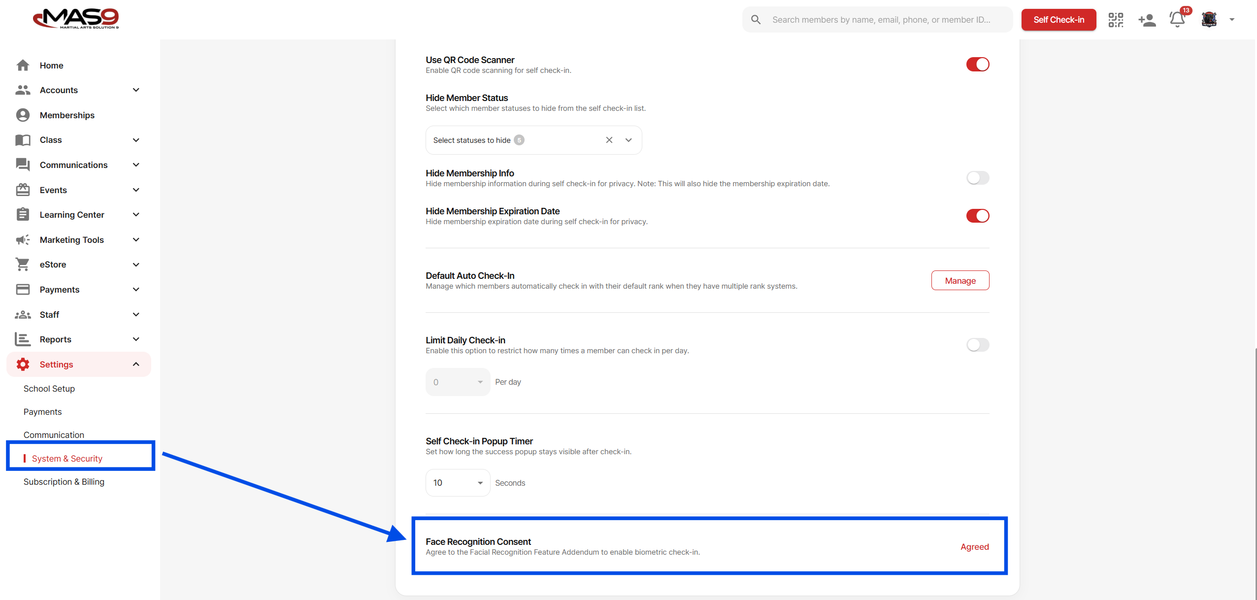 Only students who have completed consent will be able to check in using Face Recognition.