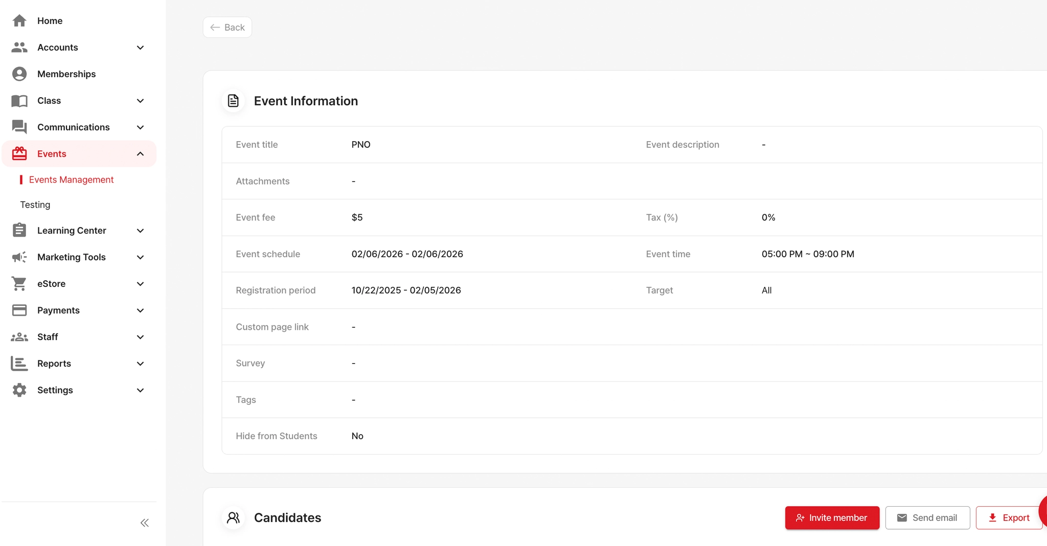 To check who has registered for your event:Go to Event → Events ManagementClick on the event you’ve createdScroll to the bottom of the event details pageThe list of registered participants will be displayed there.