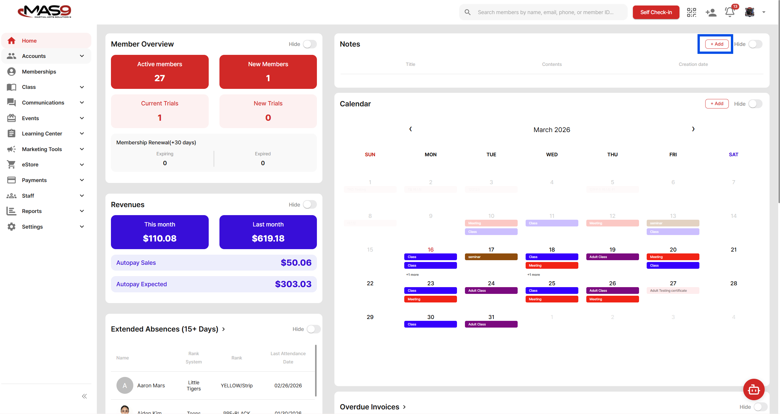The Notes section on your dashboard can be used as a simple reminder tool for you or your staff.