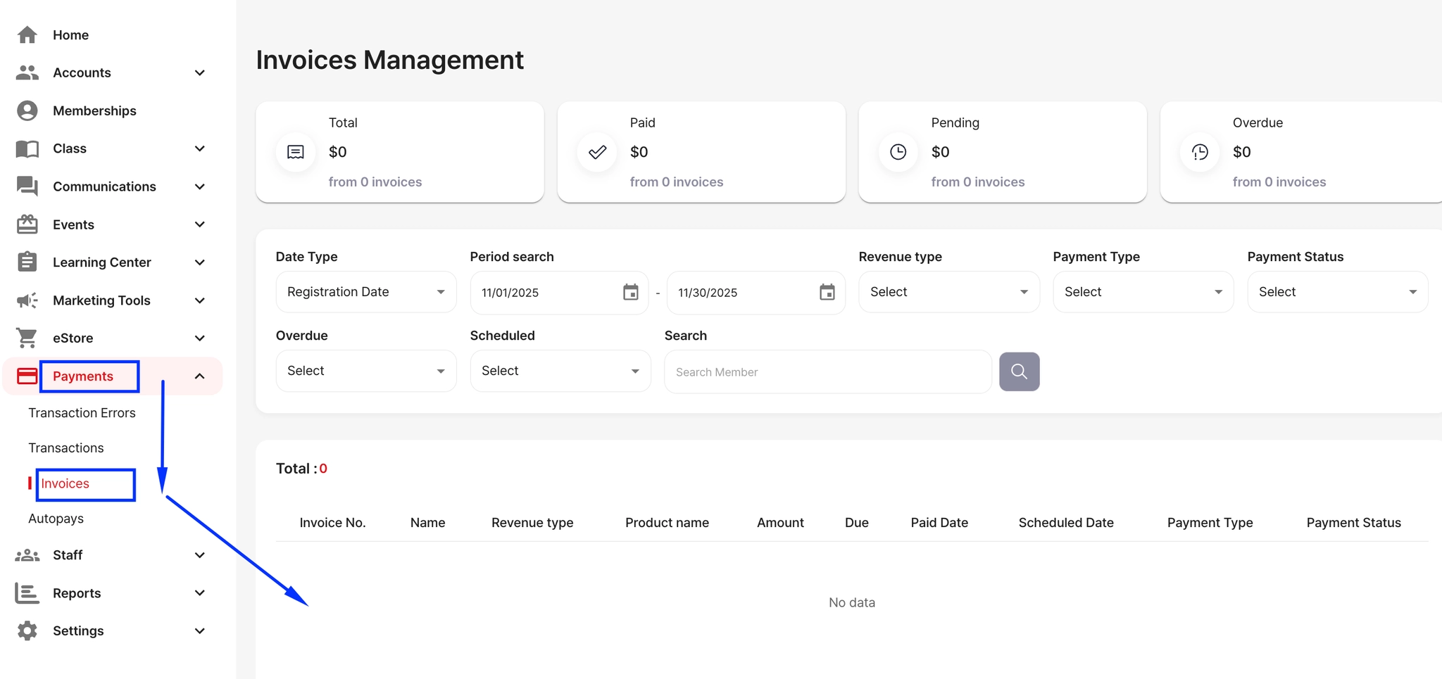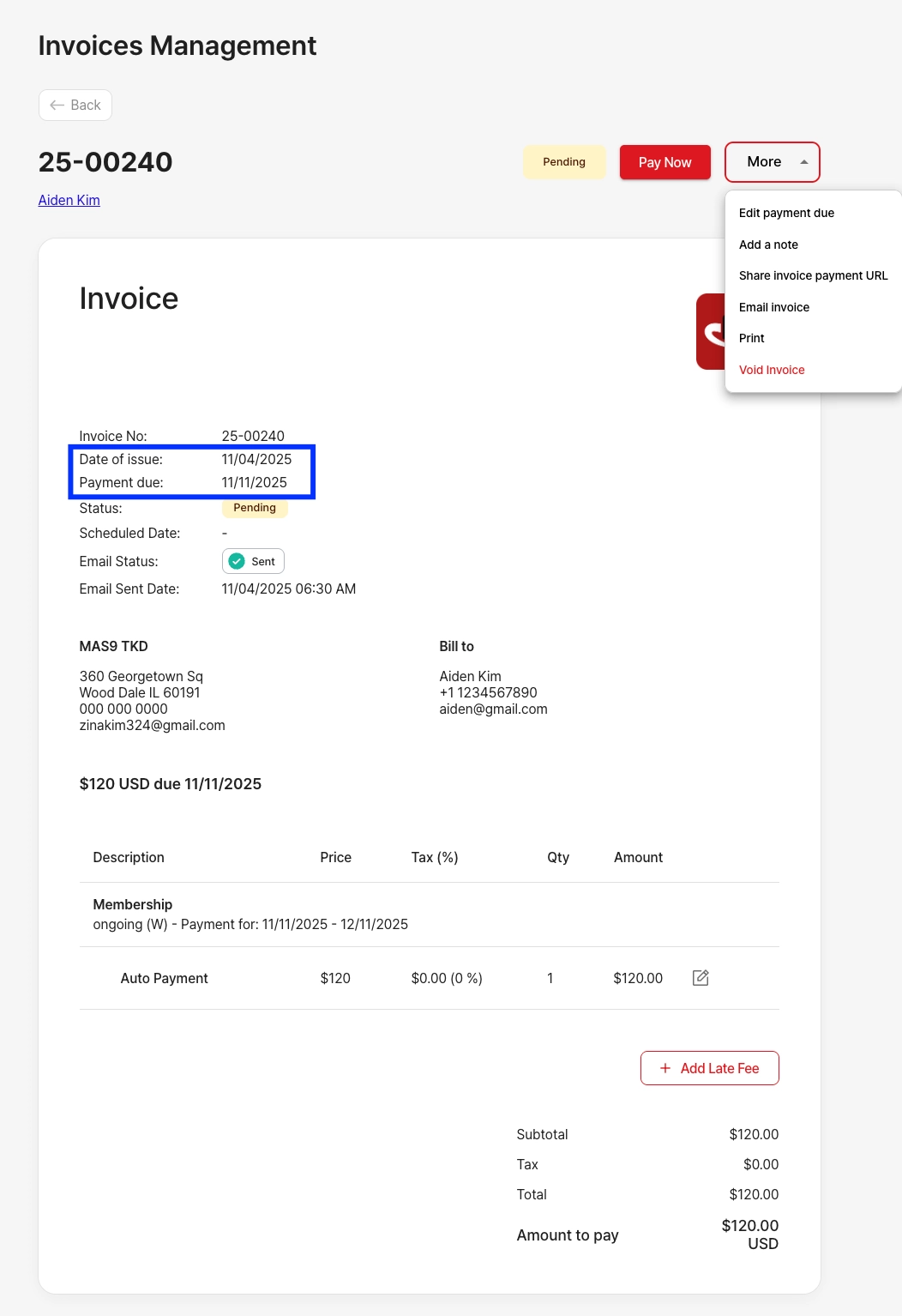 2. Cash or In-House Payments - If the student is paying by cash or through an in-house method, an invoice is automatically generated 7 days before the due date. This invoice is then sent to the student as a reminder.