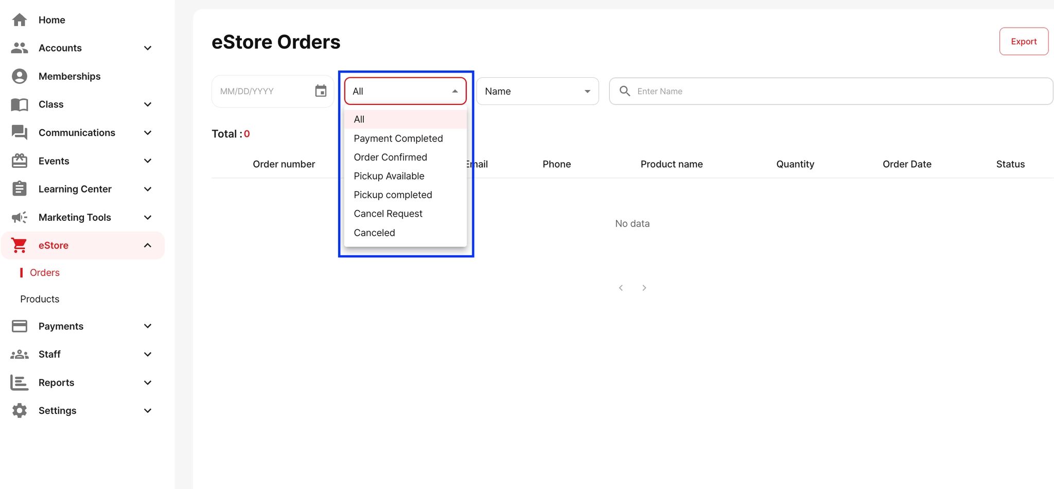 You can view all details about sold products by going to eStore → Orders. In the Orders section, you can see who purchased the items and which products were sold.